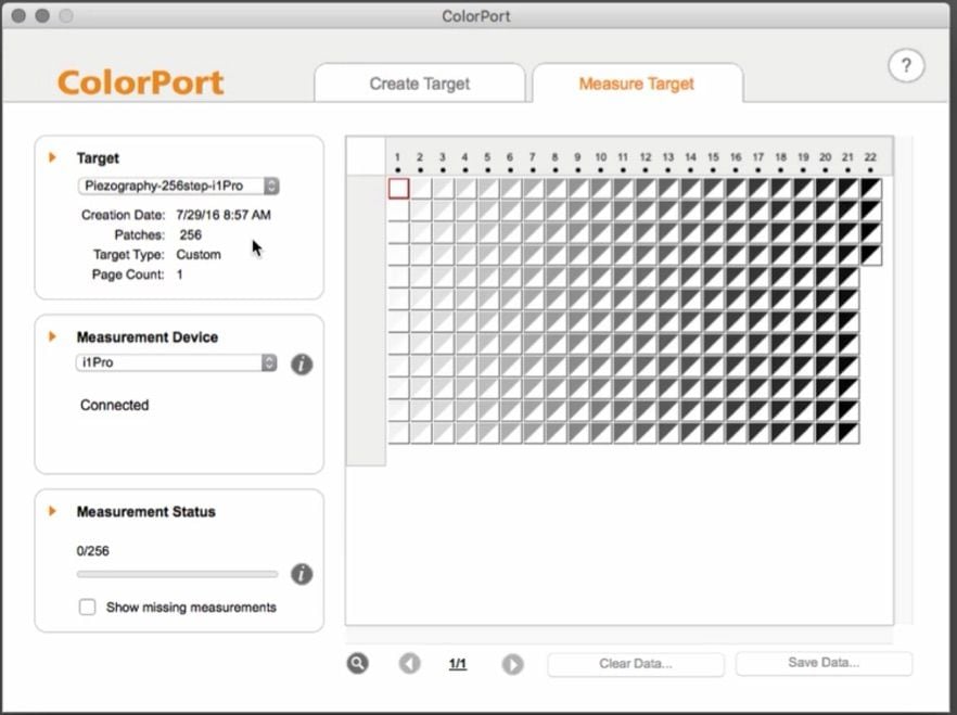 Once your target has been printed and cured overnight, plug in your i1Pro spectro and open the ColorPort software.