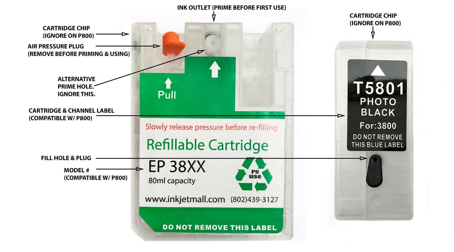 Please read these instructions thoroughly before attempting to fill, refill or use refillable cartridges in your Epson SC-P800 printer.