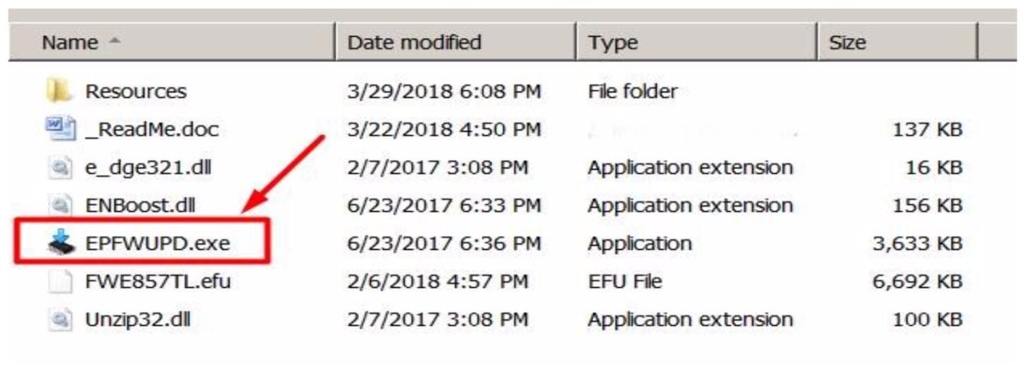 With the printer in Firmware Update Mode and plugged into your computer via USB, run the EPWUPD program to update the firmware on the printer.