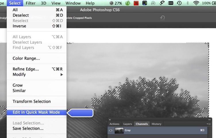 Do You Need or Want Black section just previous to this section to find how to create a Quick Mask channel from the existing Grayscale Channel. That is where this tutorial will pick up. We will start by editing the Quick Mask Channel.