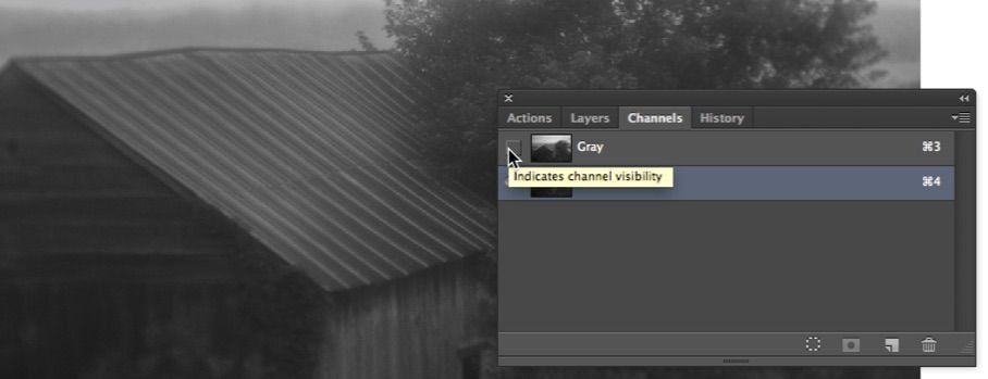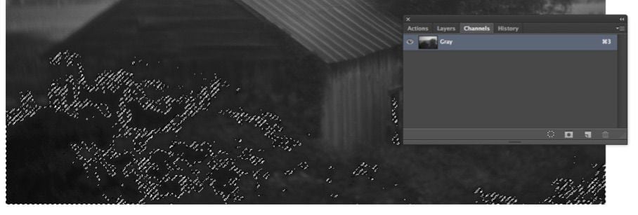 1) Click on the Load Channel as Selection to create a selection that is a copy of the Grayscale channel.