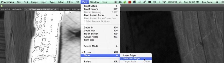 Many people still painstakingly paint their masks. Often a simple lasso tool with Refine Edge will produce less tell tale signs of masking. A tell tale sign of masking is any mask that we can detect or figure out was there in the Print. Your goal should be to leave no evidence behind. Piezography makes that more difficult and will make you a better imager for it.
