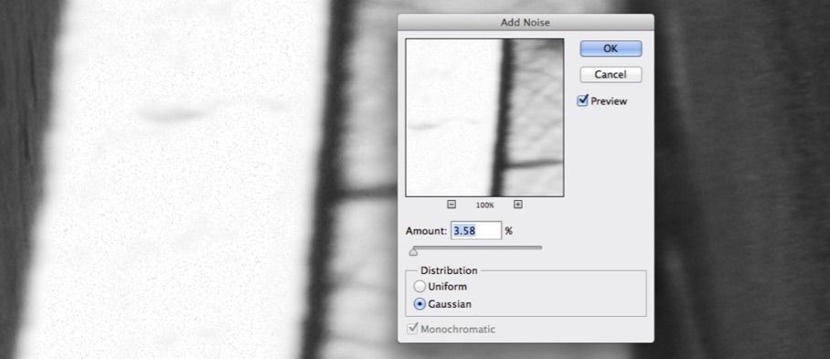I’ve zoomed in 200% to try and match up some Gaussian Noise to try and imitate the adjacent image. Were this a scanned neg, I would be imitating grain. Were this a jpg compressed image, I would be imitating the compression. Here we have a smooth Sony A7R capture - so a little Gaussian Noise - followed by a little Gaussian Blur!
