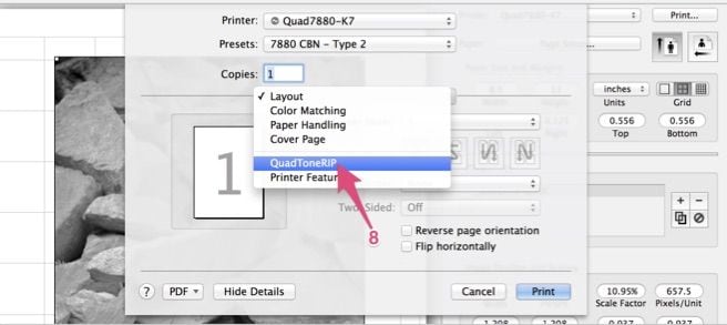 Select QuadTone RIP 16-bit or 8-bit from Mode menu.